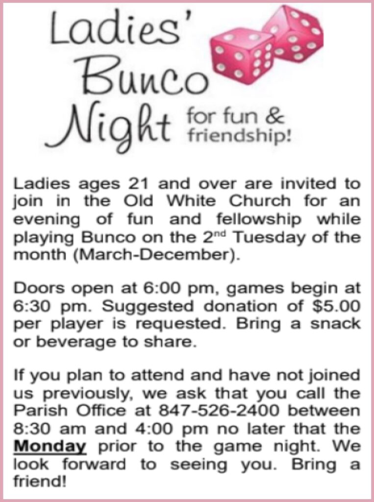 Join us at the next Ladies Bunko Night on Tuesday, April 14th!