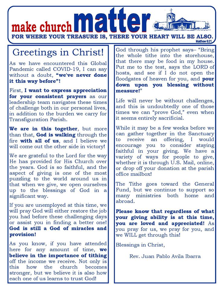 TRANSFIGURATION PARISH MAILING ADDRESS