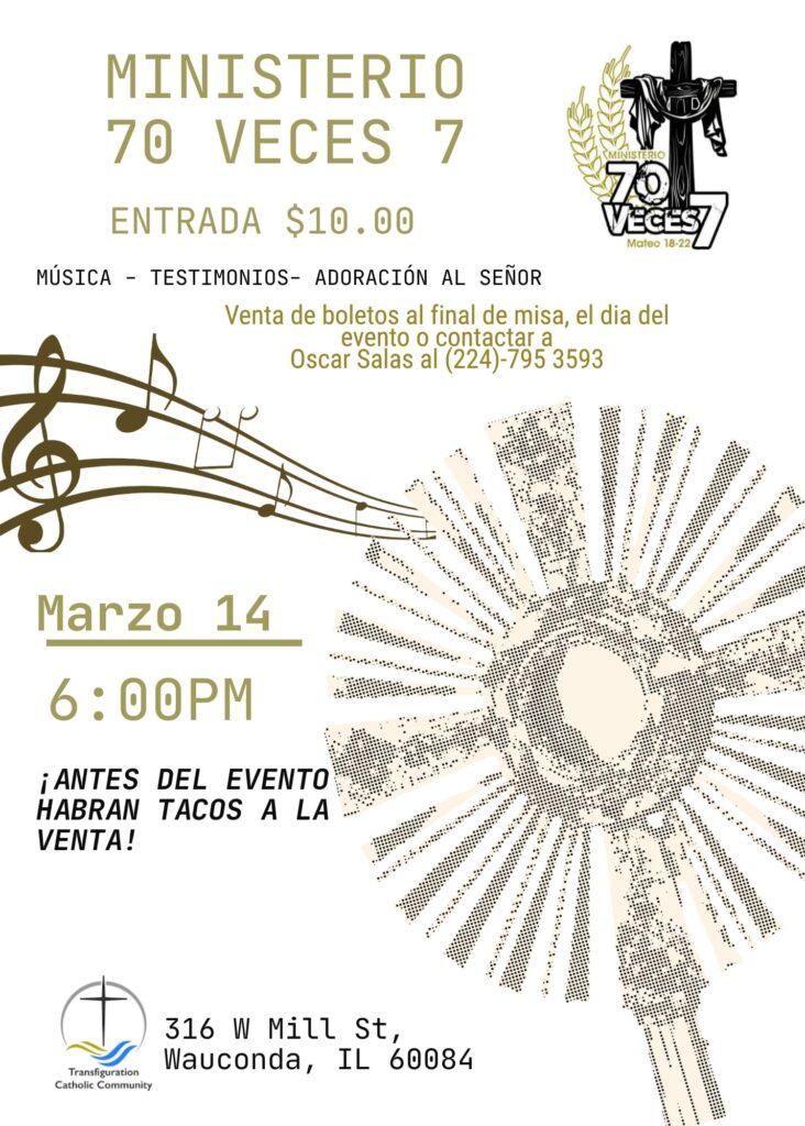 Para mas información por favor llamar a las oficinas parroquiales.