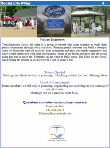 The Social Activity Commission at Transfiguration helps to fulfill our parish mission statement in seeking Christ and sharing his Gospel through companionship and celebration outside church and school. The Commission organizes and executes the logistics of conducting parish-wide fundraising and social events, while promoting christian values and experiencing fun activities with fellow parishioners.